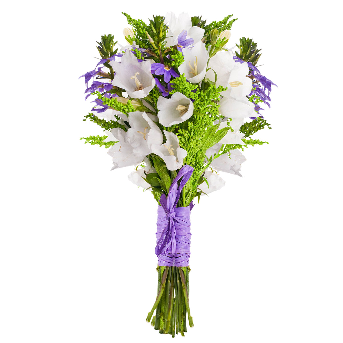 Колокольчик кампанула белый, лобелия, зелень. Упаковка (лента, пленка, крафт, сетка, пленка матовая)