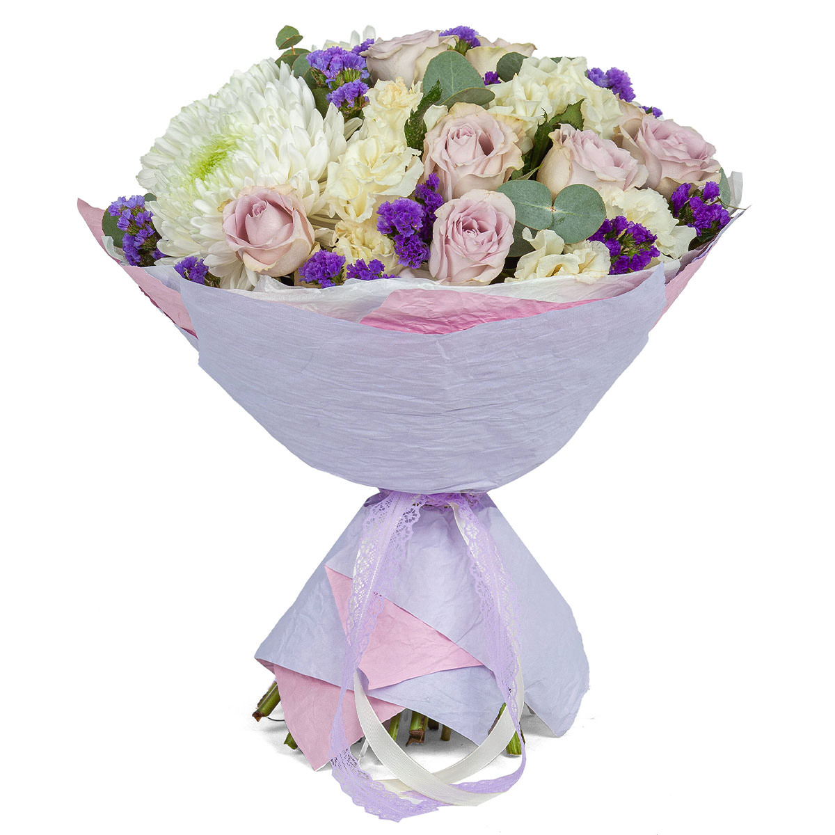 | Состав | Лавандовые розы, Розы, Хризантемы, Эвкалипт |