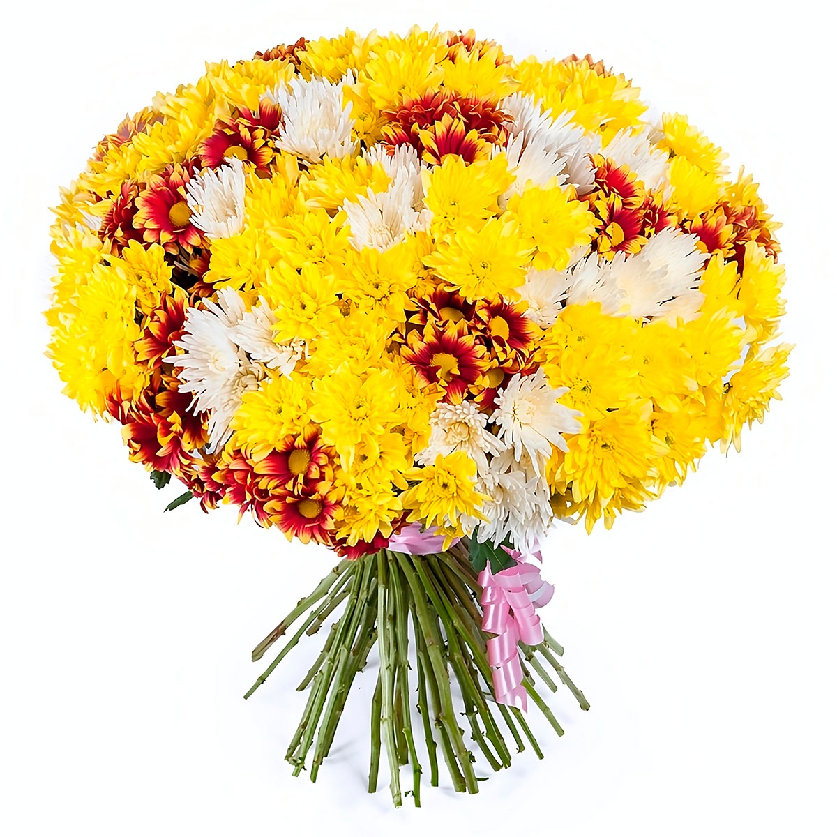 Хризантема кустовая микс 3 с доставкой по г Заволжск: вы можете купить букет в цветочном интернет-магазине «Флормания» по цене за 220 руб.