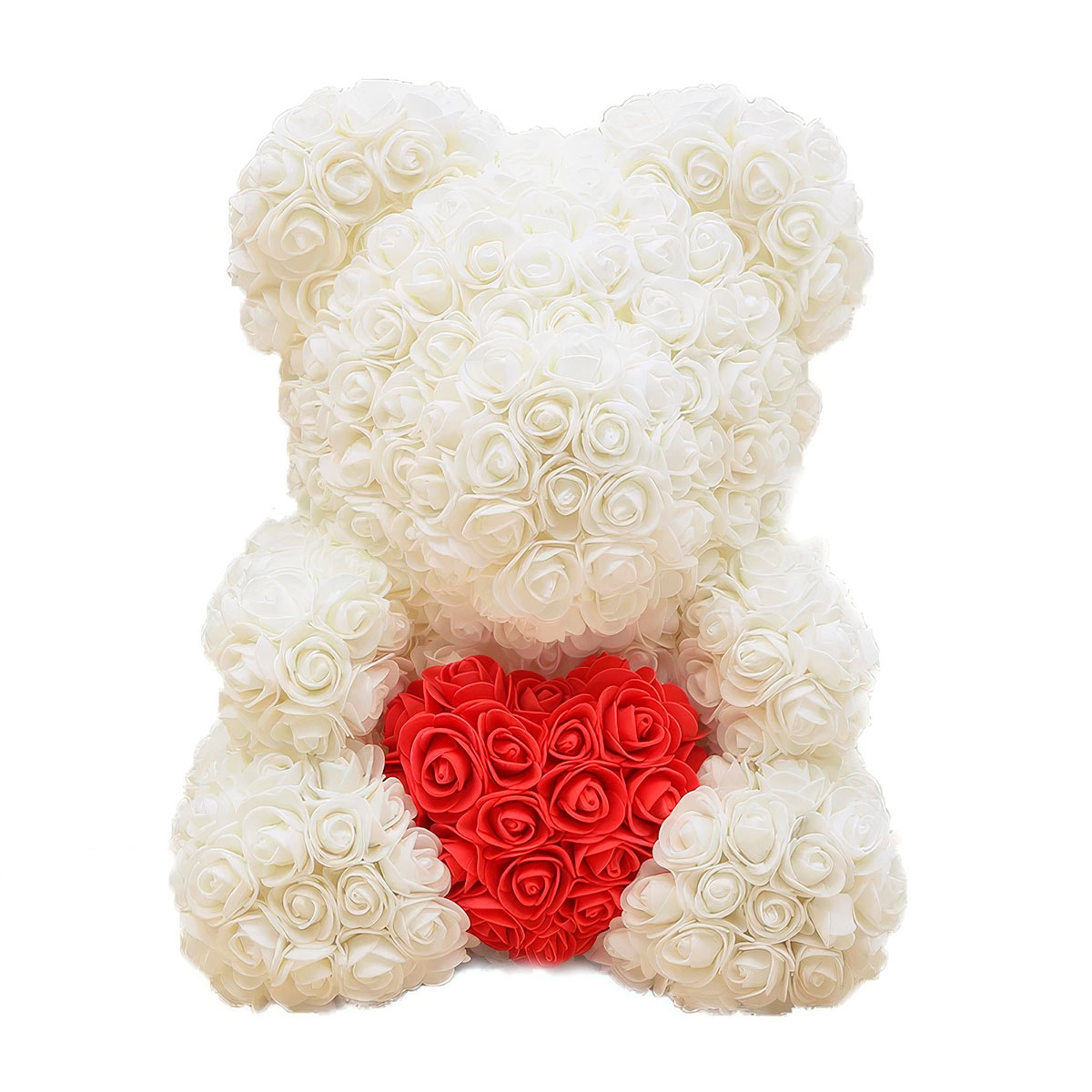 Мишка из роз бежевый с красным сердцем (40 см) с доставкой по г Заволжск: вы можете купить подарок в интернет магазине «Флормания» по цене за 4590 руб.