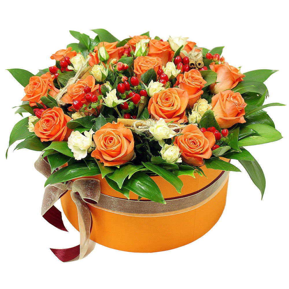 Цветы в коробке «Оранжевый закат» с доставкой по г Заволжск: вы можете заказать букет в интернет-магазине цветов «Флормания» по цене от 2890 руб.