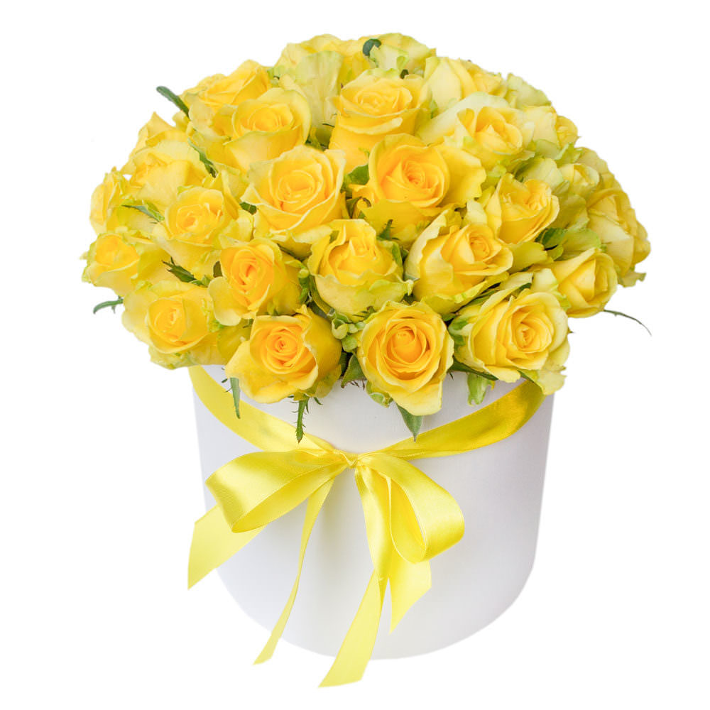 Цветы в коробке «Желтые Розы» с доставкой по г Заволжск: вы можете заказать букет в цветочном салоне «Флормания» по цене от 2890 руб.