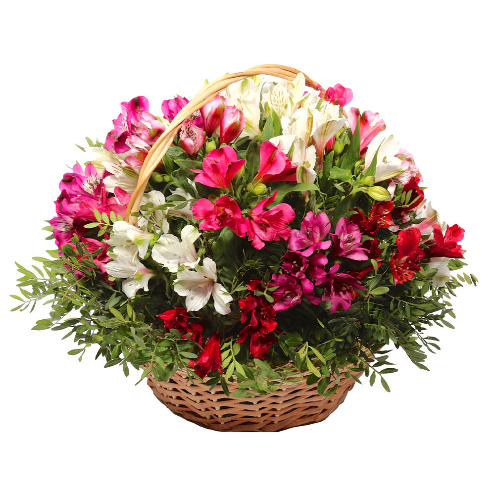 Цветы в корзинке «Краски альстромерий» с доставкой по г Заволжск: вы можете заказать букет в цветочном гипермаркете «Флормания» по цене от 3190 руб.