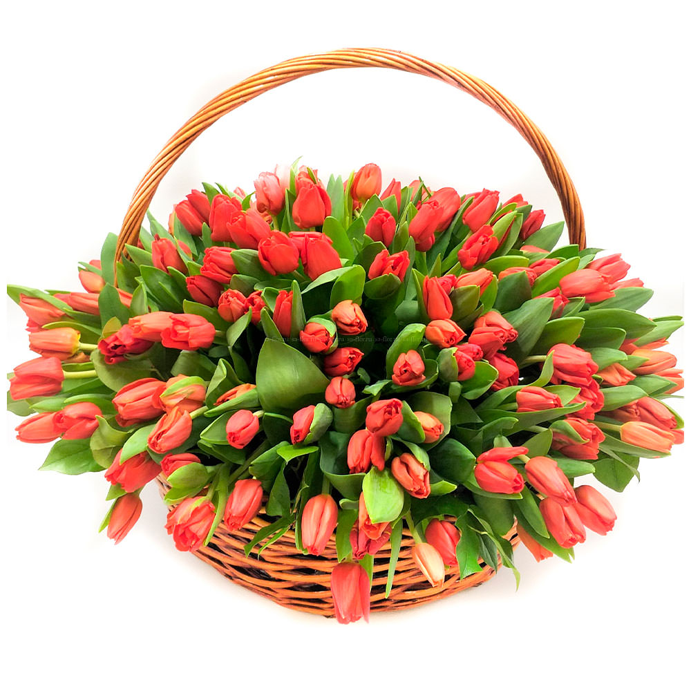 Цветы в корзинке «Красные тюльпаны» с доставкой по г Заволжск: вы можете купить букет в онлайн-магазине «Флормания» по цене от 3190 руб.
